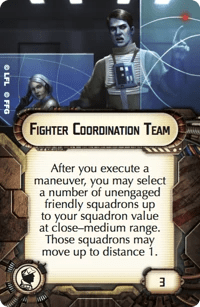 All in all, some tradeoffs which make it less resilient and a bit more expensive, but a great addition to a Sloane Swarm fleet. If you play it right, this ship can push five squadrons and even speed them up a little, getting your TIEs in range earlier. It’s also a cheaper way to bring a Fleet Command, since the next step up is a 112 point Cymoon.